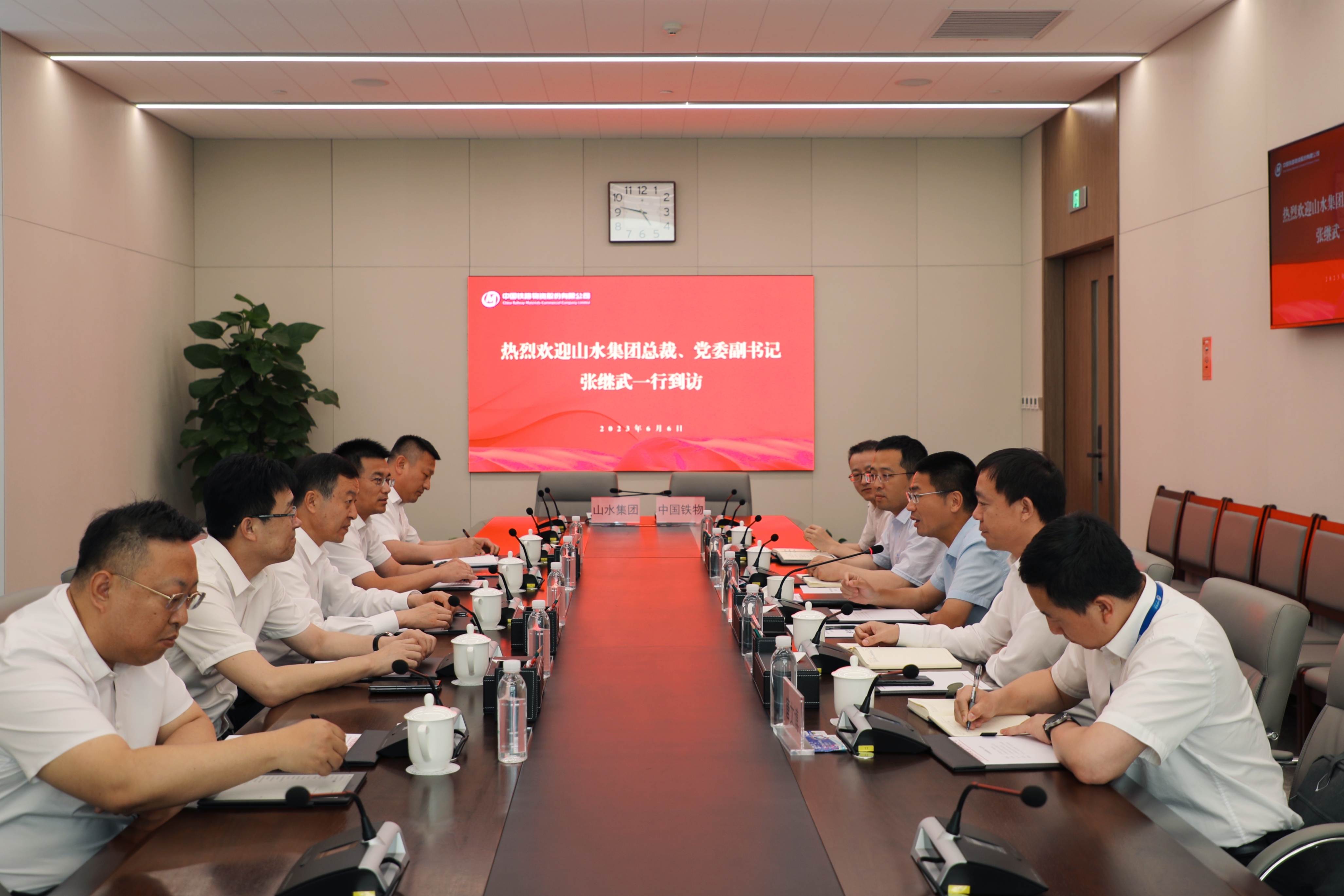 杜波對張繼武一行的到訪表示熱烈歡迎,對山水集團長期以來給予中國鐵物的信任和支持表示感謝,介紹了中國物流集團的基本情況及中國鐵物的發(fā)展規(guī)劃、業(yè)務板塊等情況。他表示,山水集團是中國鐵物的重要合作伙伴,此次戰(zhàn)略合作協(xié)議的簽署,將進一步促進雙方合作交流,希望充分發(fā)揮各自專業(yè)優(yōu)勢,在水泥等工程物資、物流資源整合、原燃料供應等方面,開啟新的合作篇章。